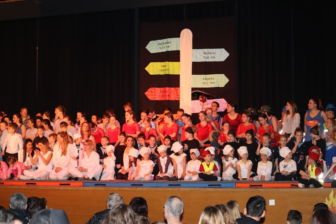 Von unseren kleinsten Turnerinnen und Turnern, welche von ihren Eltern auf die Bühne begleitet wurden, bis zu den verschiedenen Aktiv-Riegen wurden die Besucher auf unterhaltsame Weise daran erinnert, dass unser Alltag ohne Bäcker, Polizisten, Bauarbeiter, Lehrer, Ärzte und sogar Sportreporter einfach nicht der selbe wäre.